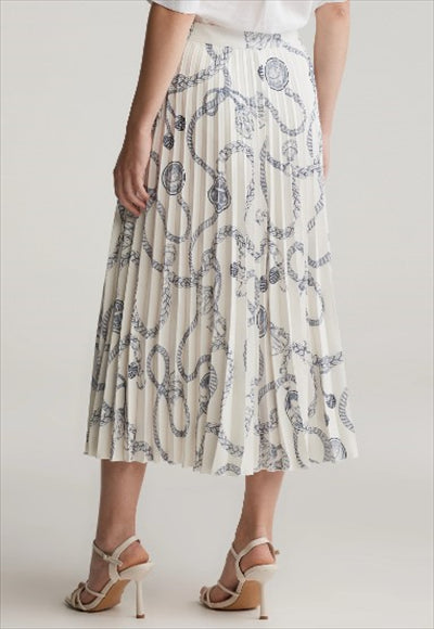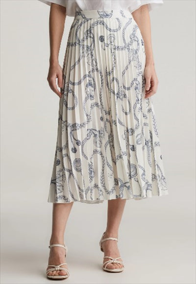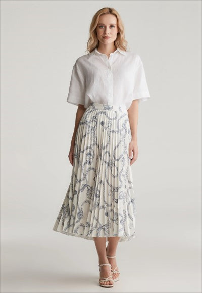 تنورة ميدي نسائية مطوية، مزينة بطبعة موسمية أصلية. تصميم رياضي أنيق بخصر متوسط ​​الارتفاع، يكمله سحاب جانبي غير ظاهر. تضمن تركيبة الخامات المصنوعة من ألياف صناعية مُعاد تدويرها 100% خفة مثالية، وثباتًا مثاليًا للشكل، وسهولة في الارتداء. التنورة ناعمة الملمس ومريحة للغاية في الارتداء. قطعة مثالية تُكمل إطلالتك الصيفية بأناقة.