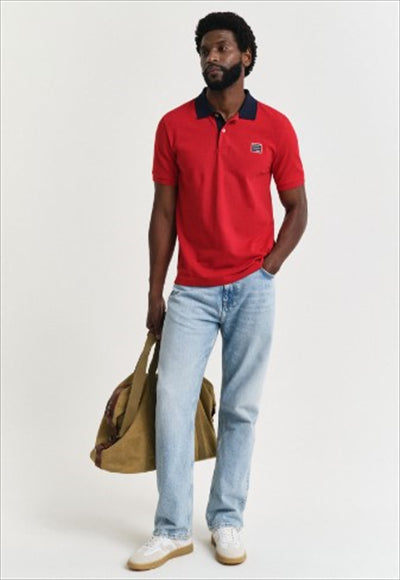 هذا القميص البولو مصنوع من مزيج من القطن العضوي، ويتميز بعناصر مصممة بلون متباين. مصمم بقصّة عادية، وياقة تقليدية مسطحة محبوكة، وفتحة أزرار تحمل شعار الماركة، وفتحات جانبية في الحاشية، وعلامة GANT منسوجة على الصدر. تتميز الياقة، وفتحات الحاشية الجانبية، ووسادة الرقبة، وشريط الرقبة، والجزء السفلي من الفتحة بلون مختلف.
