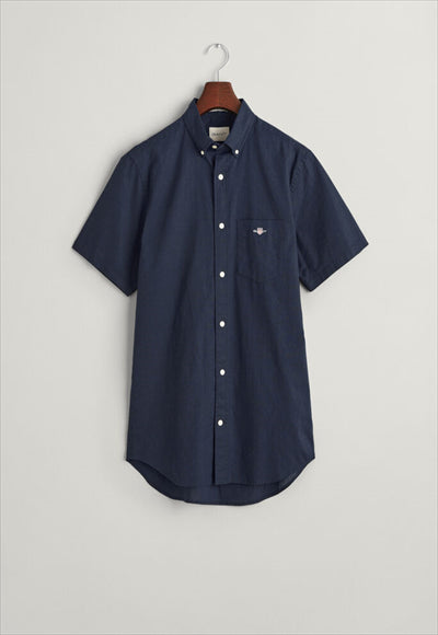 تناسب منتظم ياقة بأزرار سفلية أكمام قصيرة رسم GANT مطرز على جيب الصدر مصنوع من مزيج القطن والكتان الناعم، هذا القميص ذو المقاس العادي خفيف ومسامي وجيد التهوية. تم تصميمه بقصة عادية وأكمام قصيرة لأشهر الصيف الدافئة. يتميز بياقة بأزرار سفلية، وحاشية منحنية، وجيب على الصدر مع تطريز درع وطيات مربعة مع حلقة قفل في الخلف. مصنوع للاستخدام اليومي، ارتدي هذا القميص مع الجينز والشينو والسراويل القصيرة على حدٍ سواء. الخامة: 70% قطن، 30% كتان