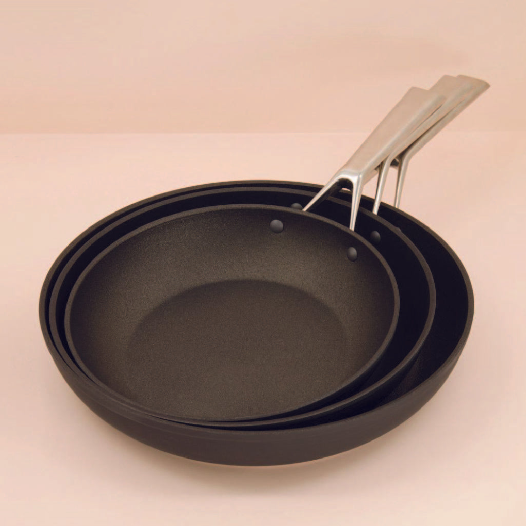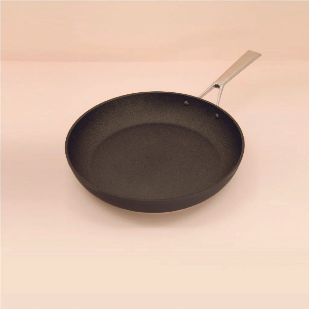 المقالي الأنيقة ; طلاء غير لاصق؛ مقبض من الفولاذ المقاوم للصدأ آمن في الفرن حتى 400 درجة فهرنهايت؛ صنع في ايطاليا