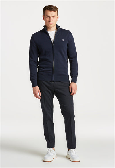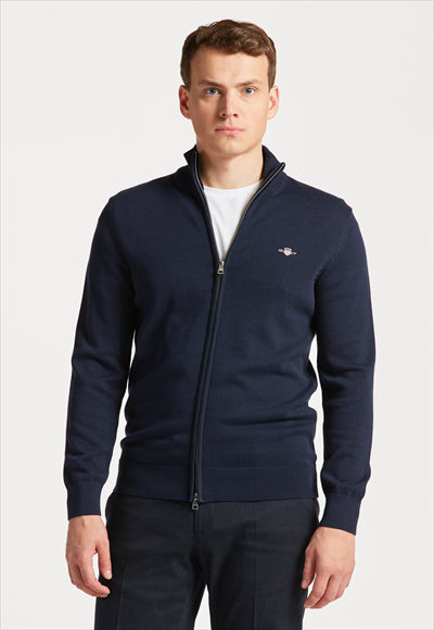 تعتبر هذه السترة القطنية متعددة الاستخدامات وكلاسيكية وأنيقة دائمًا، ضرورية لأي خزانة ملابس. نسيج متوسط الوزن مصنوع من طبقات، ويتميز بمقاس عادي، وسحاب أمامي، وتفاصيل مضلعة وتطريز درع GANT الكلاسيكي على الصدر. ارتديه مع قميص بأزرار للمكتب، أو ارتديه مع تي شيرت لأيام خارج العمل.