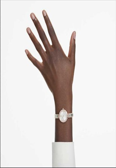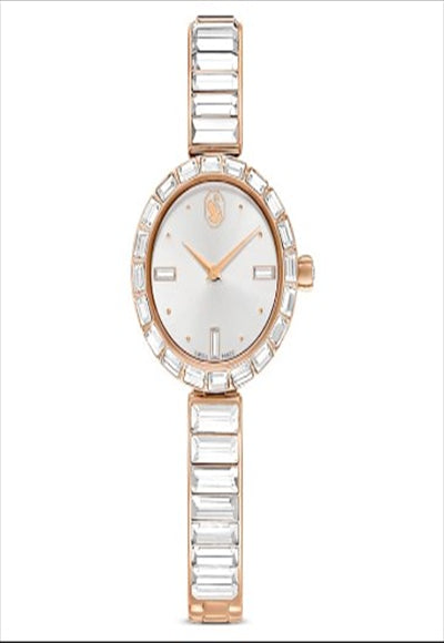 تُعزز هذه الساعة الجميلة المستوحاة من المجوهرات أناقتها بكريستالاتها. يتميز تصميمها المصنوع من الفولاذ المقاوم للصدأ بقطر 25 مم بلمسة نهائية بلون الذهب الوردي، ويحيط بها إطار مرصع بعشرين كريستالة شفافة مقطوعة بشكل باغيت، بينما توجد كريستالة واحدة داخل التاج. كما تُبرز الكريستالات المقطوعة بشكل باغيت ثلاث علامات مؤشر على الميناء الرمادي الفاتح، والذي يتميز أيضًا بشعار بجعة عند الساعة 12. يُحيط بالمعصم سوار بانغل مزين بـ 16 كريستالة مقطوعة بشكل باغيت، وهو قابل للتعديل بالكامل لملاءمة مريحة. هذه الساعة السويسرية الصنع مقاومة للماء حتى عمق 50 مترًا، وهي الإكسسوار المثالي الذي يُضفي لمسةً من الأناقة على جميع جوانب الحياة.