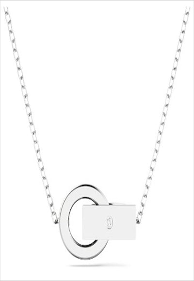 أضف لمسةً مميزةً إلى أناقتك مع هذه القلادة المجوفة المتداخلة. تُعلق على سلسلة طويلة، وتتميز بحلقتين مطليتين بالروديوم متصلتين ببعضهما البعض ومزينة بأحجار باڤيه زرقاء مستديرة القطع. اختاري هذه القطعة غير المتماثلة لإطلالة يومية أنيقة.