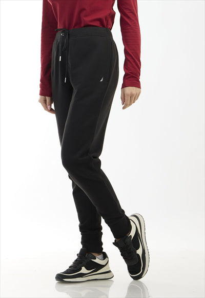بنطال رياضي نسائي بشعار مطرز. ترتدي العارضة مقاس XXS. تكوين القماش: 20% بوليستر، 80% قطن