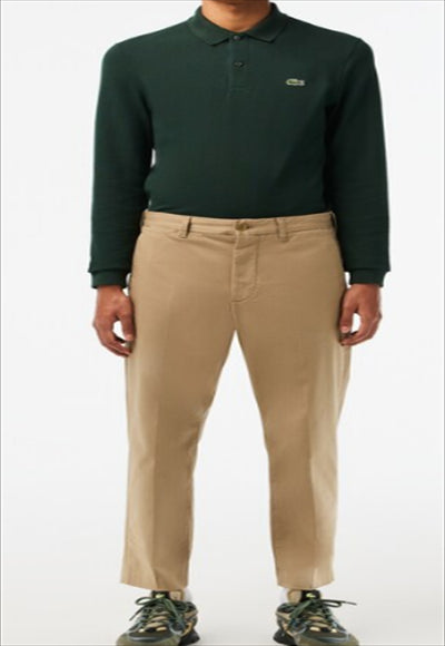 لون رصين وقصة مدببة، هذا البنطلون تشينو من لاكوست مصنوع من قطن الجبردين العضوي القابل للتمدد. يتميز هذا الطراز المتميز بأنه عصري وخالد، ويحتوي على خمسة جيوب مميزة. تكتمل اللمسات النهائية الممتازة بهذا الأمر الأساسي الذي يمكن ارتداؤه ملفوفًا طوال الصيف.