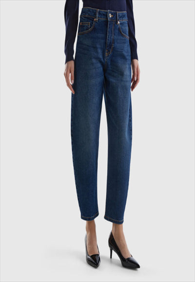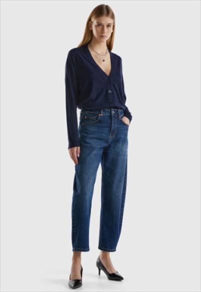 بنطلون طويل بخمسة جيوب من قماش الدنيم القطني المرن المعاد تدويره. تصميم ساق منفوخة، أوسع في الأعلى وأضيق في الأسفل. خصر عادي بفتحة سحاب وأزرار. تصميم عصري ومظهر مهترئ، لإطلالة أصيلة. قصة فضفاضة: نقترح اختيار مقاس أصغر من مقاسك المعتاد. تحتوي هذه القطعة على 20% على الأقل من القطن المعاد تدويره.