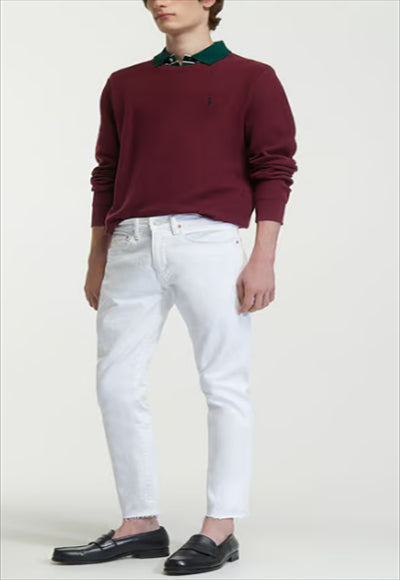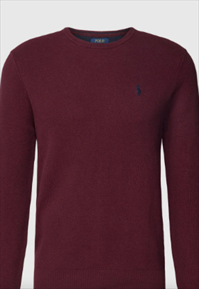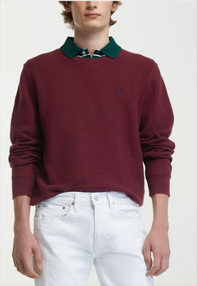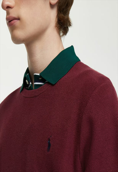 كنزة مستقيمة من بولو رالف لورين باستخدام القطن، يتميز هذا المنتج برقبة مقفولة وأكمام طويلة ومهر مطرز على الجانب الأيسر من الصدر ولمسات نهائية مضلعة.