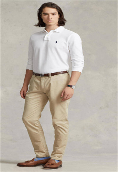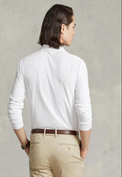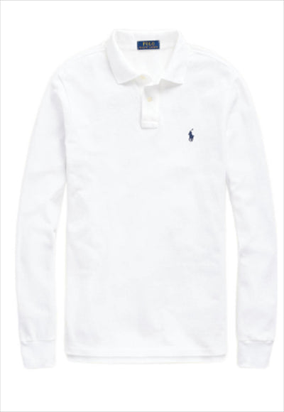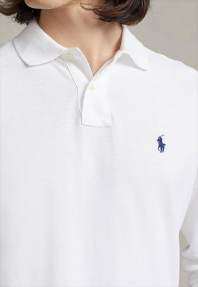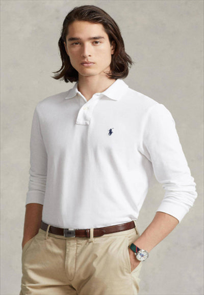 هذا البولو الرجالي من بولو رالف لورين مصنوع من القطن وله طباعة شعار. النموذج لديه طوق كلاسيكي وأكمام طويلة. يتميز قميص البولو بزر للإغلاق.