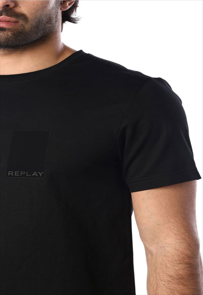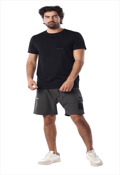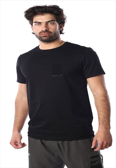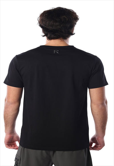 تيشيرت قصير بطبعة شعار على الجيب وطباعة R على الظهر للرجال
