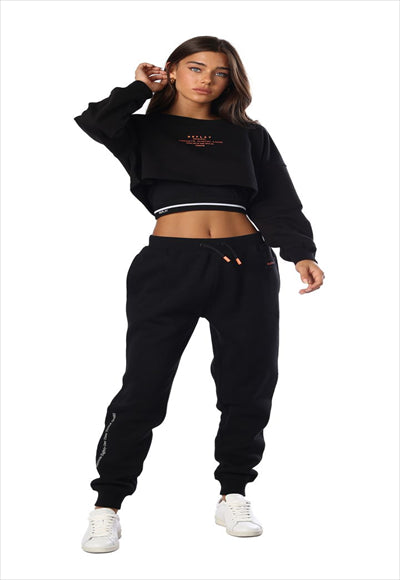 سويت شيرت فرنسي طويل جديد مع شعار على الصدر وقميص نسائي بدون أكمام