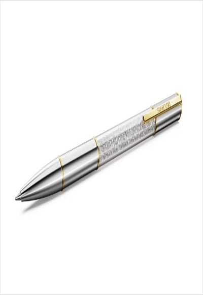 يجمع قلم كريستالين الجاف بين الإبداع والفخامة. يتميز هذا القلم المميز بأسطوانة دائرية فضية اللون، بالإضافة إلى لمسات ذهبية اللون تتضمن مشبكًا عمليًا محفورًا عليه اسم سواروفسكي. يتألق هذا التصميم اللافت في وسطه بحوالي 480 كريستالة متلألئة، كل منها مُزينة بدقة باستخدام تقنية كريستالين الشهيرة. إنه إضافة مميزة لمكتبك أو هدية مميزة لأحبائك. عبوات الحبر الأسود والأزرق متوفرة للشراء في متاجر سواروفسكي.