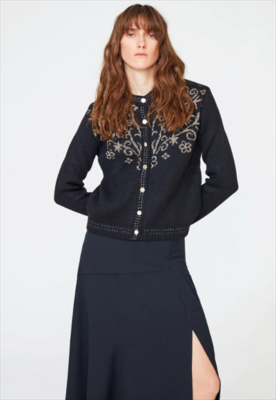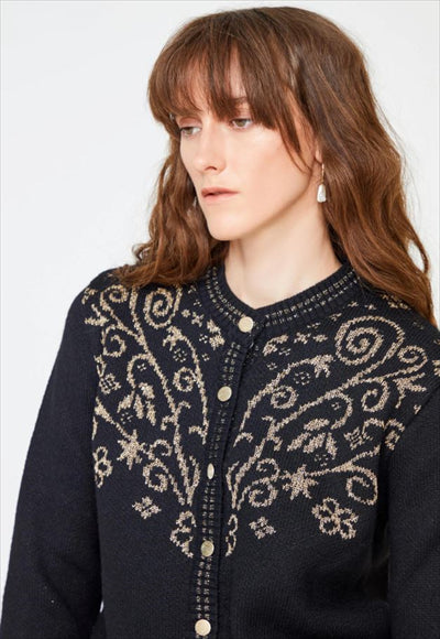 مواصفات المنتج الجبهة بأزرار تريكو القماش: 70% أكريليك| 30% بوليستر الكم: كم طويل نوع الياقة: ياقة دائرية النمط: زهور