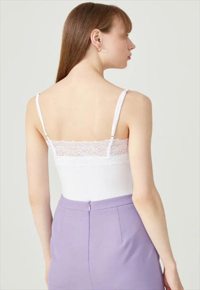 striped collar striped lace narrow Fabric: 95% viscose | 5% elastane Sleeves: Sleeveless Collar type: V-neck Style: Plain Style: Formal Model size Size: 36 Height: 177 cm Chest: 85 cm Waist: 60 cm Hip: 88 cm
