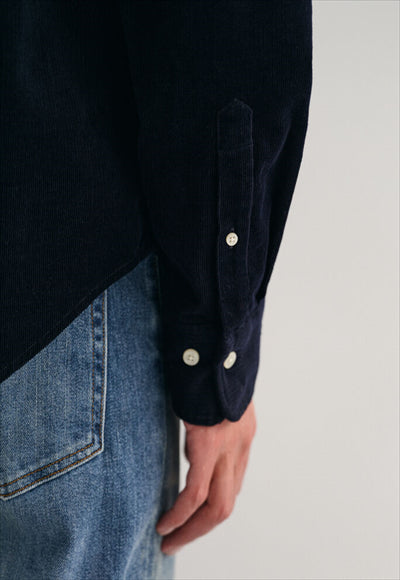 Popular for their soft texture and beautiful depth of color, corduroy shirts are perfect for fall days when temperatures start to drop. Featuring a regular, seamless fit, this shirt features classic details like a button-down collar, adjustable cuffs, and box pleats with a lock loop at the back. Material: 100% Cotton