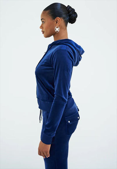 Mid-rise sports pants in blue. Straight leg cut, with a ribbed waistband featuring an adjustable drawstring and front pockets. These essential sports pants are characterized by back pockets secured with a flap cover and equipped with silver-colored metal parts and an embroidered JC logo in colors on the hip.