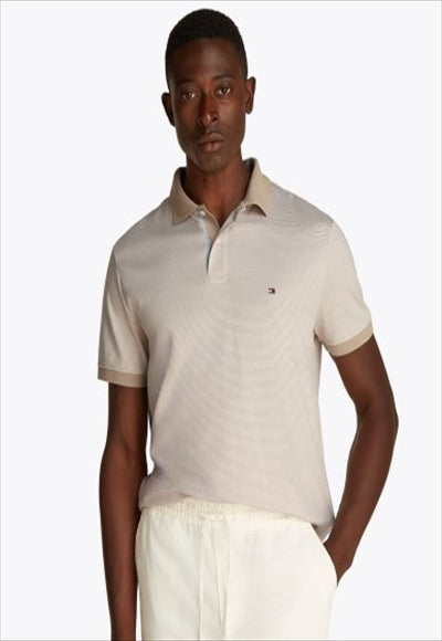 Regular interlocked striped polo shirt, beige