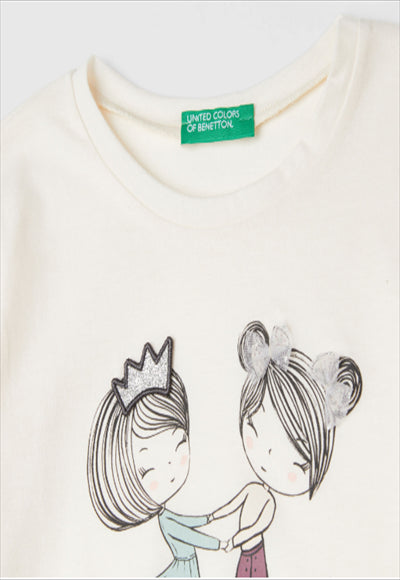 Long-sleeved T-shirt made of soft pure organic cotton. Slightly loose fit and a round neckline. Nice print on the front with tulle embroidery. Comfortable and romantic.