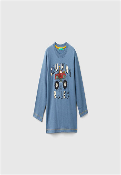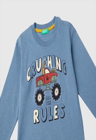 Long-sleeved, round-neck T-shirt made of pure cotton with a warm texture. Printed on the front with fabric embroidery, for a pleasant and comfortable look. 100% cotton