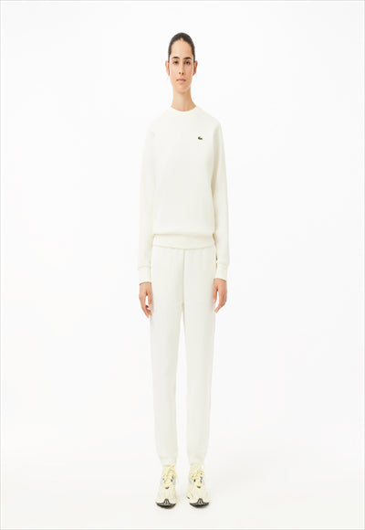 Sports pants made from a stretchable double-knit pique cotton blend. Adjustable elastic waistband, elastic bands fixed at the ankles, and slit pockets make this sports piece casual and comfortable.