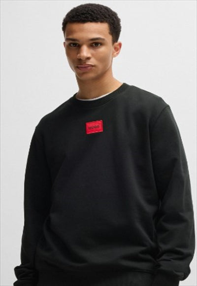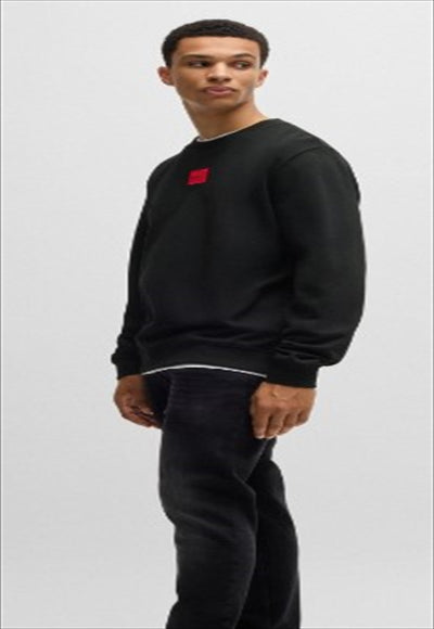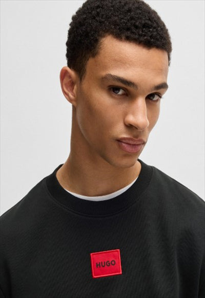 HUGO Menswear crew neck sweatshirt, designed with a comfortable fit from a cotton-elastane blend featuring branded stripes and a stacked metal logo.