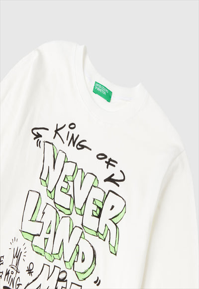 Boys' T-shirt with short sleeves and a round neck made of pure cotton. Regular fit and logo print on the front. Perfect with jeans.