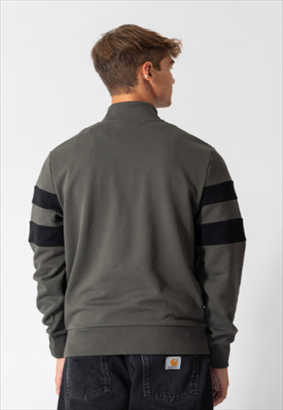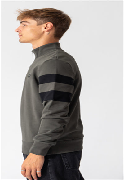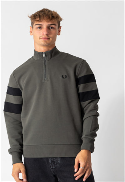 There is something about the half-zip jacket. The perfect midpoint between casual comfort and timeless elegance, it is a versatile wardrobe staple that seems to be having a moment of attention right now. Our latest version of the half-zip sweatshirt features bold, oversized cuffs on the sleeves and the distinctive laurel embroidery on the chest, combining familiar Perry design details with a new bold modern touch.