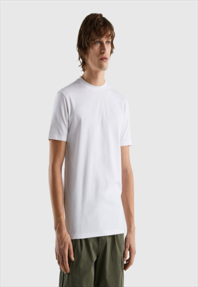 Short-sleeved T-shirt with a round neck made of stretch cotton. Slim fit, for a basic and versatile piece.
