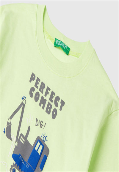 Long-sleeved T-shirt with a round neckline made of pure organic cotton. Car-themed print with a logo on the chest, for little car enthusiasts.