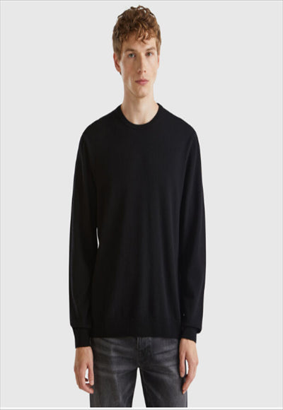 A long-sleeved sweater with a round neckline made of pure Merino wool, lightweight and pleasant to the touch. A true classic with a simple cut, perfect for everyday wear. The presence of the Woolmark logo guarantees the high quality of the garment through the application and monitoring of specific standards in wool production, from breeding to the final product.