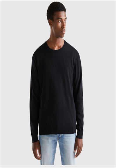 Lightweight cotton blend long-sleeve sweater with a round neckline. Basic and versatile, it can be worn casually with a T-shirt or at the office over a shirt.