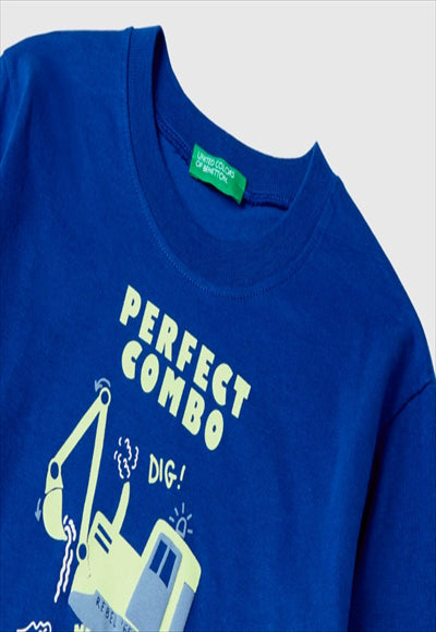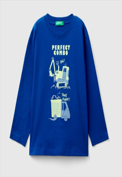 Long-sleeved T-shirt with a round neck made of pure organic cotton. Car-themed print with a logo on the chest, for little car enthusiasts. 100% cotton