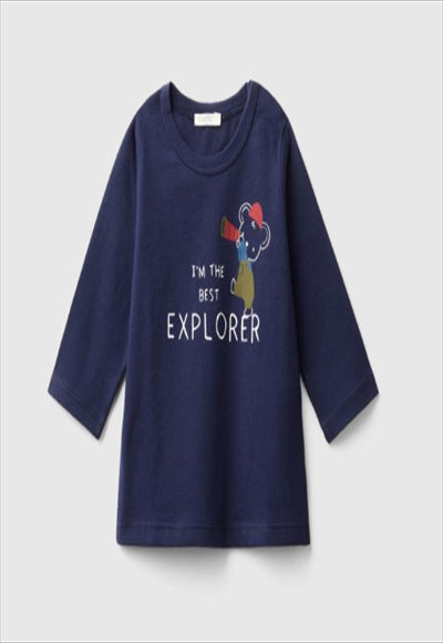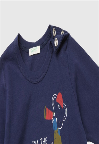 Long-sleeved T-shirt with a round neckline made from pure organic cotton. Practical button opening on the left shoulder; cute animal print on the front. Fun and sustainable.