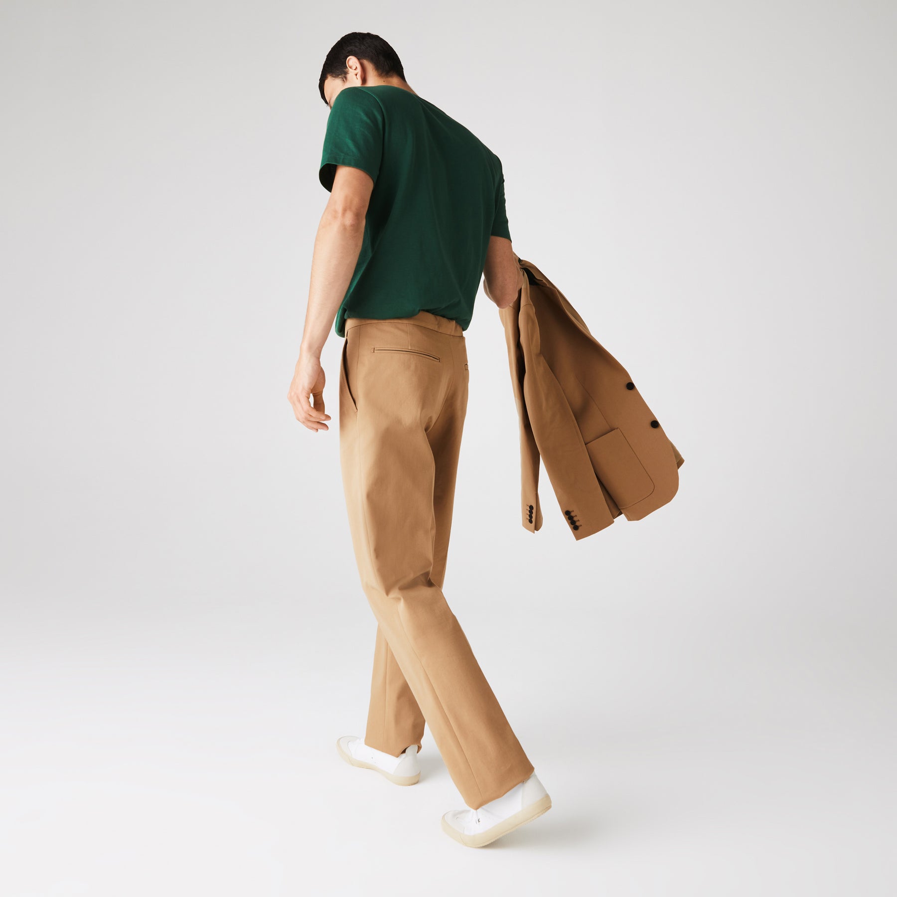 tight story Stretch cotton. twill. Adjustable elastic waistband with drawstring Italian pockets on the back, including a zippered pocket. Single-color embroidered Lacoste logo. Fabric: Cotton (93%), Elastane (7%). Lining: Polyester (65%), Cotton (35%). The model is wearing size 42
