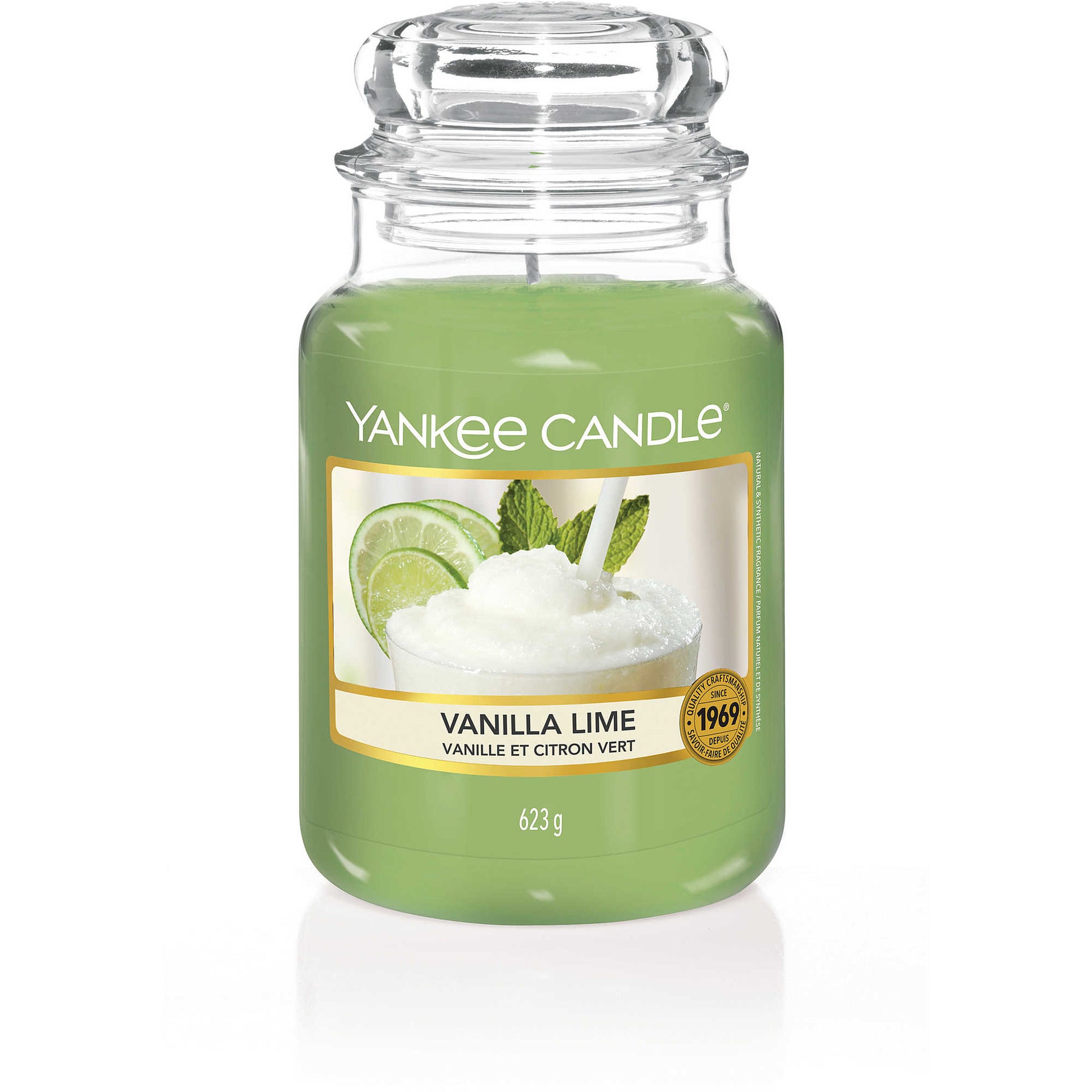 Yankee Candle Large Vanilla Lemon Jar. A large bowl of wax and a glass of green color.