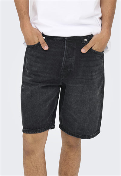Enjoy the sunny and warm weather and get your favorite new shorts, perfect for garden parties, summer holidays, or daily wear. The cotton is made from natural fibers, making it a soft and breathable fabric. Product type: Denim shorts Closure: Buttons Pockets: back pockets, coin pocket, front pockets Waist: Medium height Additional details: loops for the belt Wash/Finish: Lightly washed dark denim look Fit: Straight cut