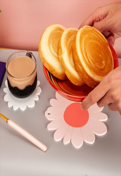 بساط مقاوم للحرارة حجم كبير (وردي / أبيض)