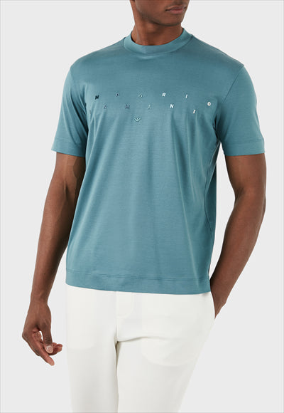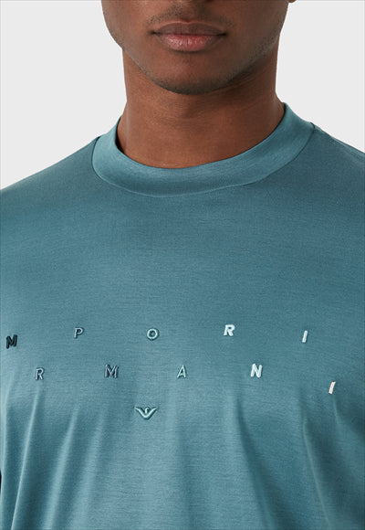 شعار طاقم الرقبة استرخاء تناسب الرجال تي شيرت أخضر العلامة التجارية: إمبوريو أرماني الموديل : تيشيرت نمط الملابس: كاجوال المادة: 70% لايوسل، 30% قطن معلومات الياقة: رقبة دائري