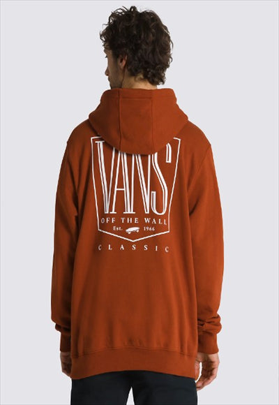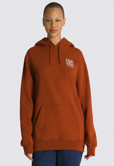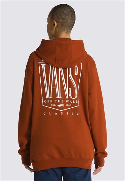 البلوزة ذات القلنسوة الطويلة المخصصة هي عبارة عن كنزة من النوع الثقيل بغطاء للرأس من الصوف القطني مع جيب أمامي وشعار Vans مطبوع على الصدر والظهر.