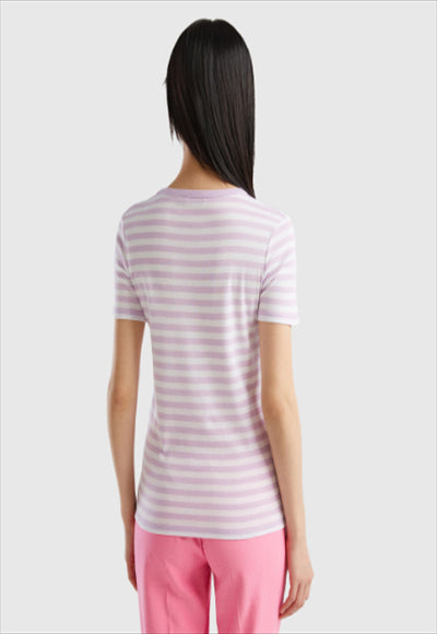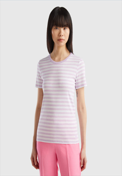 تي شيرت قصير الأكمام بنمط مخطط مصبوغ بالغزل. مصنوع من ألياف القطن الطويلة الراقية، ناعم ومقاوم وممتع الملمس. مثالية للتقليل من الزي ذو الألوان الصلبة.