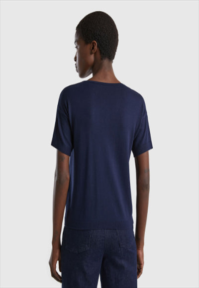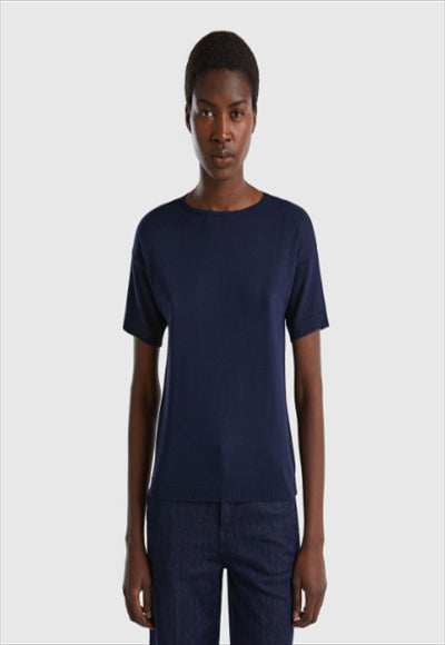 سترة مريحة بأكمام قصيرة ورقبة دائرية مصنوعة من القطن ومزيج Modal®. متعدد الاستخدامات وبتصميم أساسي، يمكن ارتداؤه بمفرده أو استخدامه تحت السترة.