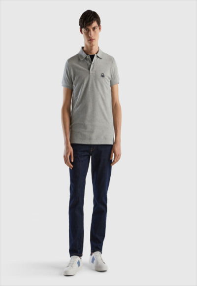 قميص بولو بأكمام قصيرة مصنوع من القطن العضوي بنسبة 100% بمقاس نحيف. خزانة ملابس كلاسيكية غير رسمية مع ياقة وفتحات في الأسفل، ومزينة بشعار مطرز على الصدر.