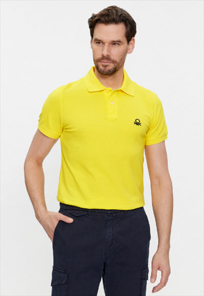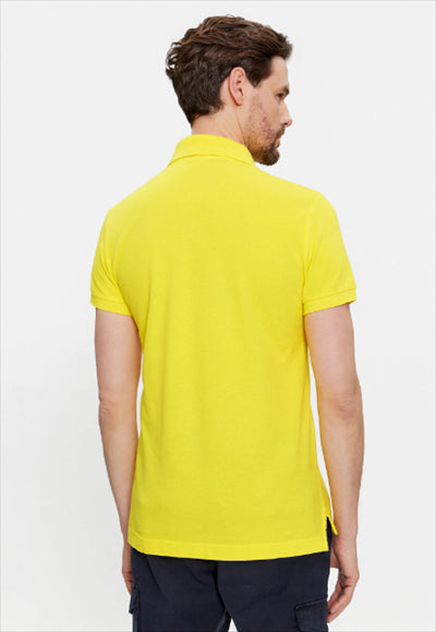 قميص بولو بأكمام قصيرة مصنوع من القطن العضوي بنسبة 100% بمقاس نحيف. خزانة ملابس كلاسيكية غير رسمية مع ياقة وفتحات في الأسفل، ومزينة بشعار مطرز على الصدر.