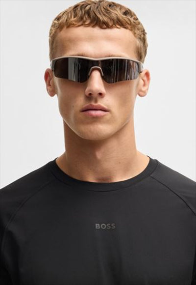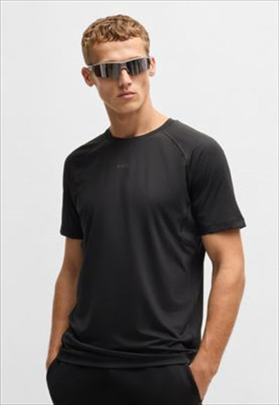 تي شيرت بقصة عادية من BOSS Menswear ، يتميز بخياطة مسطحة للراحة وحرية الحركة. نسيج مطاطي خفيف الوزن وسريع الجفاف. العلامة التجارية العاكسة الزخرفية. مقاس عادي رقبة مستديرة أكمام قصيرة الطول القياسي