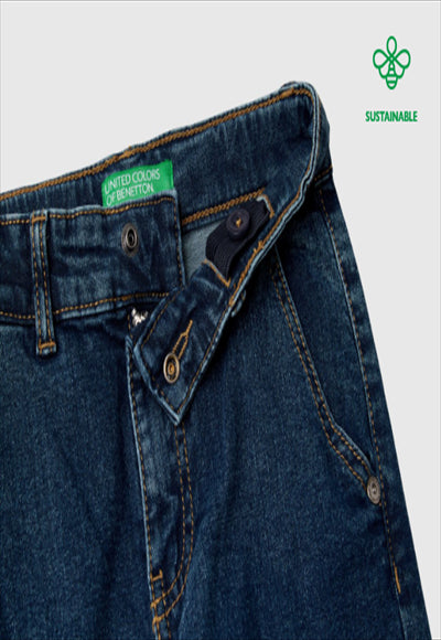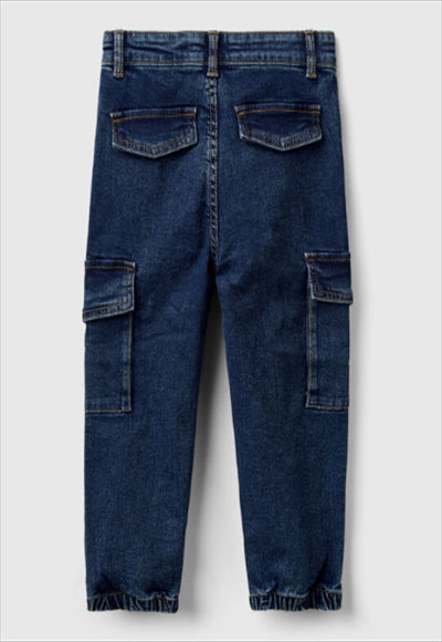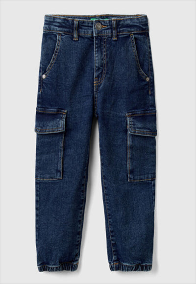 بنطال جينز كارجو بقصة ضيقة مع مظهر أنيق. فتحة بسحاب وزر، ومطاط داخلي في الأسفل. جيوب أمامية، وجيوب مبطنة بغطاء خلفي، وجيوب كبيرة بغطاء جانبي على طول الساق. مصنوع من قماش الدنيم القطني القابل للتمدد "Eco