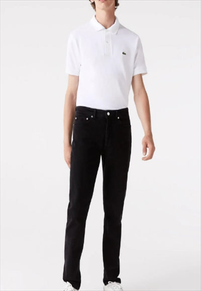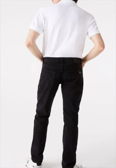 جسد مثالي قماش الدنيم القطني المطاطي خمسة جيوب سحاب مع زر معدني يحمل العلامة التجارية وملصق Lacoste على الظهر تمساح أخضر مطرز على الجيب الخلفي