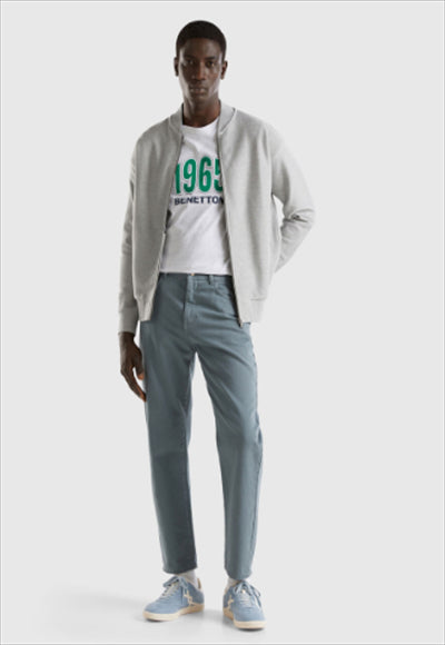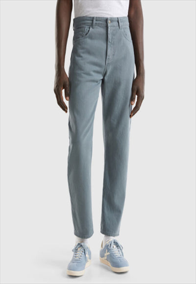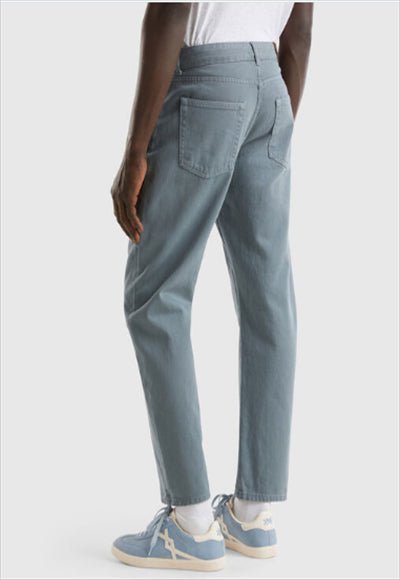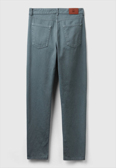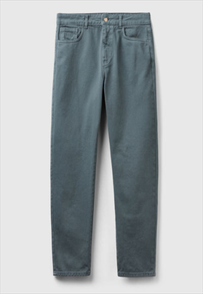 بنطلون طويل بقصّة جزرة من القطن الخالص المصبوغ المُعاد تدويره. تصميم بخمسة جيوب وفتحة مريحة بسحاب وزر. للحصول على مظهر كلاسيكي ومستدام.