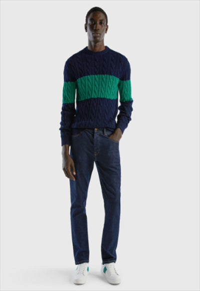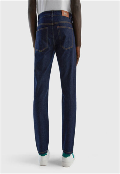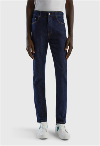 بنطلون جينز طويل من مزيج القطن المطاطي بتصميم بخمسة جيوب. قصة ضيقة وخصر عادي لملاءمة عصرية ومريحة.