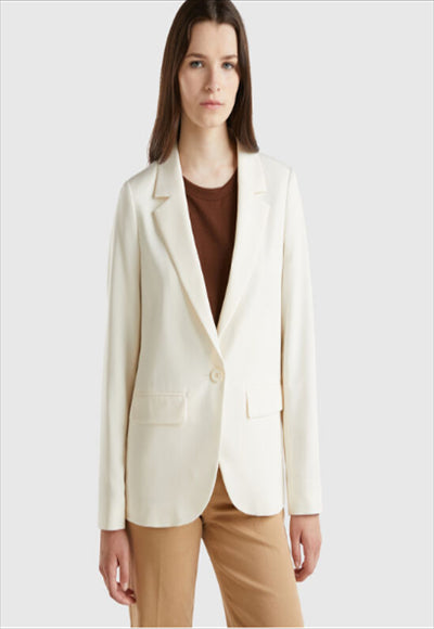 سترة مبطنة من نسيج فيسكوز مطاطي ناعم. قصة عادية، ياقة مع ياقة طويلة وجيوب جانبية في الأمام. قطعة رسمية بخطوط عصرية أنيقة، مثالية للمكتب والمدينة.