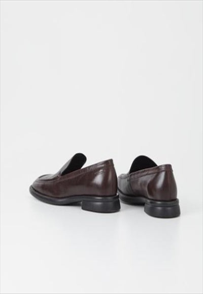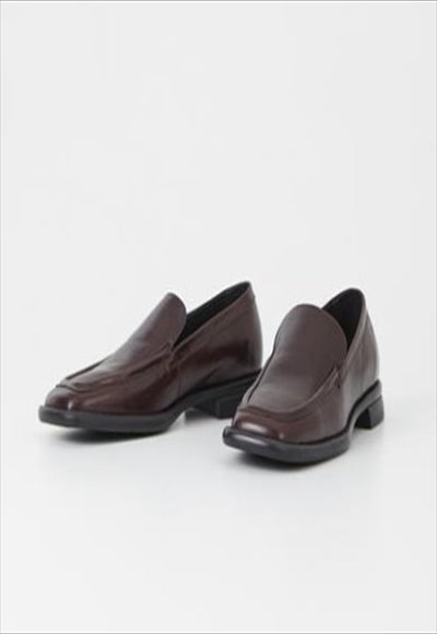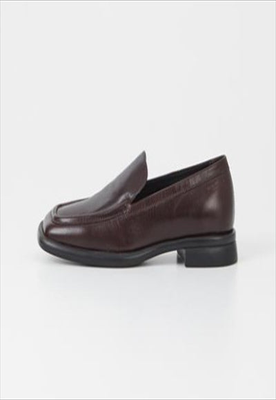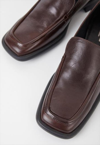 الطراز مصنوع من جلد بني غامق يتميز بأصابع مستديرة ودرزات مرتفعة على طول الجزء العلوي.