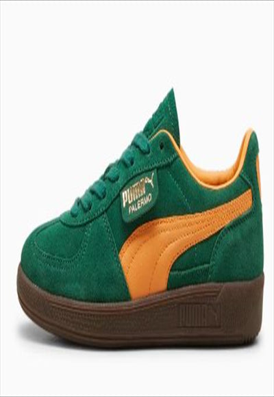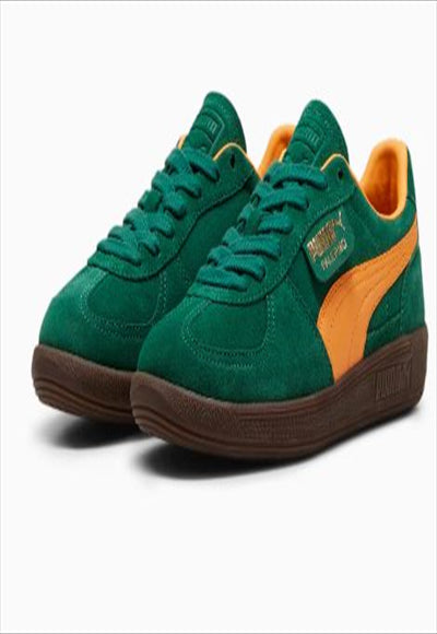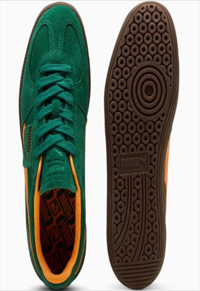 الجزء العلوي من الجلد مع قاعدة من الجلد السويدي لسان من الجلد السويدي وملصق يحمل علامة PUMA التجارية وظهر شبكي نعل أوسط مطاطي مطاط خارجي